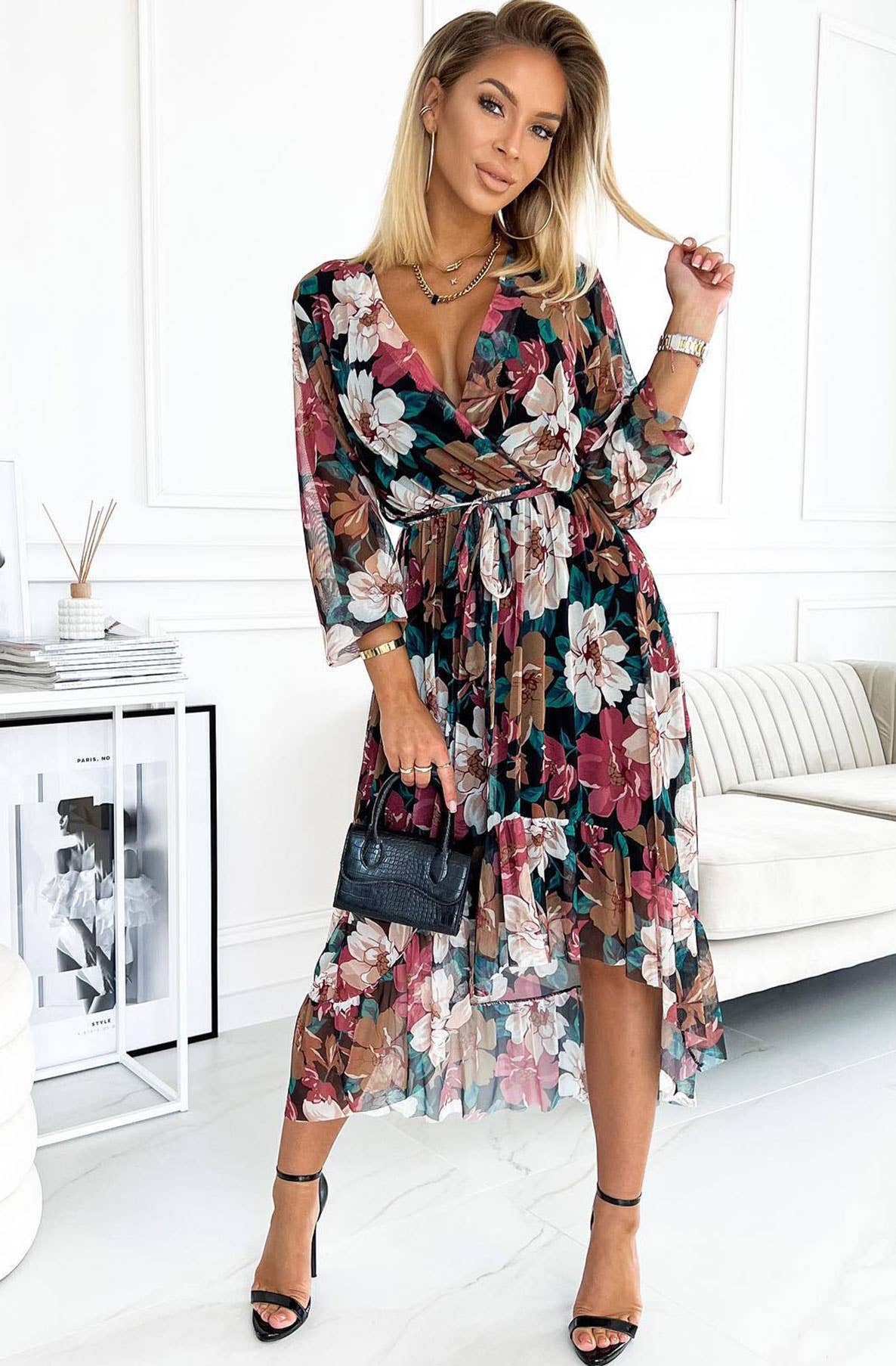 This chiffon maxi dress is perfect for a party! With a bold floral print, a low cut 'V' neck, and sheer long sleeves, this dress is stylish and playful. The elasticated waistband comes with a belt for the perfect fit, while the high-low frill hem adds a flirty touch. Plus, it's soft and stretchy for all-day comfort.