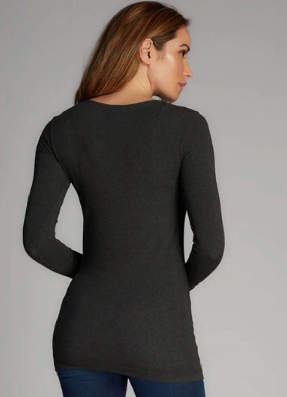 This bamboo long sleeve is perfect for wearing solo or layering when the weather gets chilly. It's incredibly flexible, comfy, and bump-friendly.
