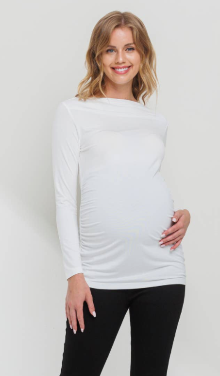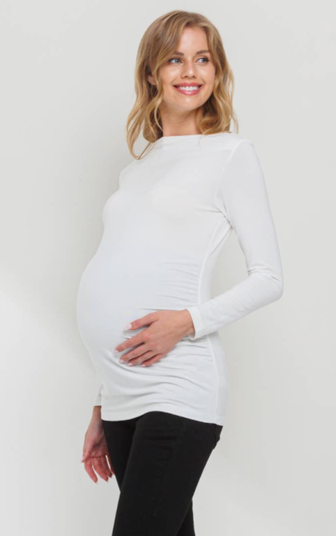 The perfect basic piece for your maternity and postpartum wardrobe! This top is extremely soft and stylish. Great as a layering piece or stand-alone piece.