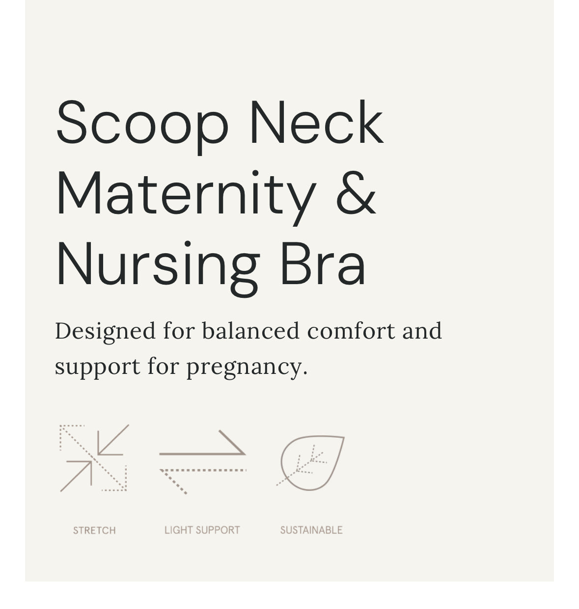 Designed to hold and mold to Mom’s changing body. The Scoop Neck Maternity & Nursing Bra balances comfort and wire-free support in a classic look. Made using sustainable and stretchy recycled nylon built into a soft, seamless silhouette that makes you feel good and look good. With an ultra-smooth profile achieved through foam pads sewn onto a hidden layer for true discretion, it's the perfect option to wear under your favorite t-shirt.