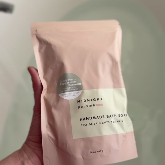 Stiff, sore muscles? No time for a massage? The Eucalyptus + Peppermint Blossom bath soak is exactly what your tense, tired body needs. Add 2 tablespoons to your bath, then slowly breathe in the invigorating steam, breathe out, and relax.