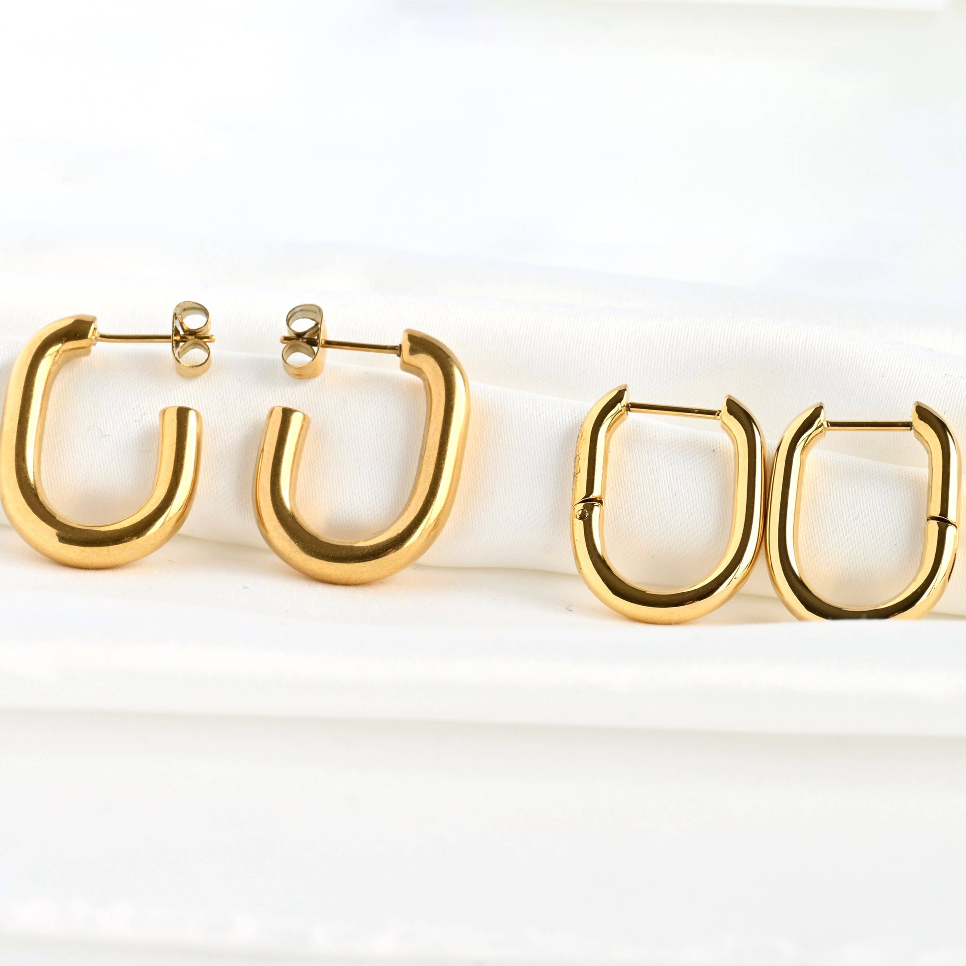 Gold Open Oblong Tube Hoops - Tarnish-proof Earrings 18k plated