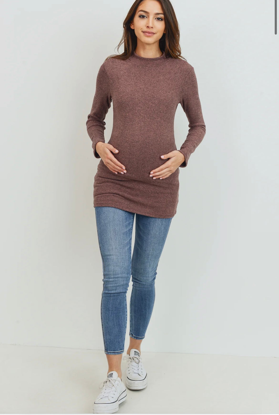 Get cozy and stylish with our Mock Neck Long Sleeve Maternity Ribbed Top - perfect for pregnancy and beyond!