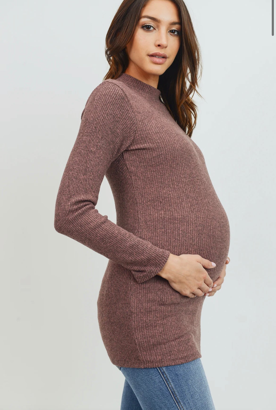 Mock Neck Long Sleeve Maternity Ribbed Top