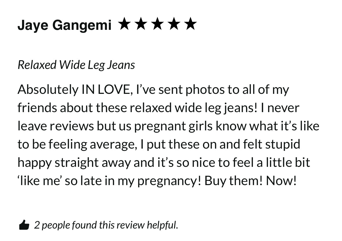 The must-have jeans for every mom-to-be! Our Relaxed Wide Leg Jeans perfectly combine comfort and chic style. Crafted with our unique full elastic waistband that gently hugs your belly, they boast timeless denim features like pockets, metal rivets, and a classic button & fly closure. The trendy wide leg cut is both flattering and fashionable. You’ll want to wear these jeans throughout your pregnancy and cherish them long after!