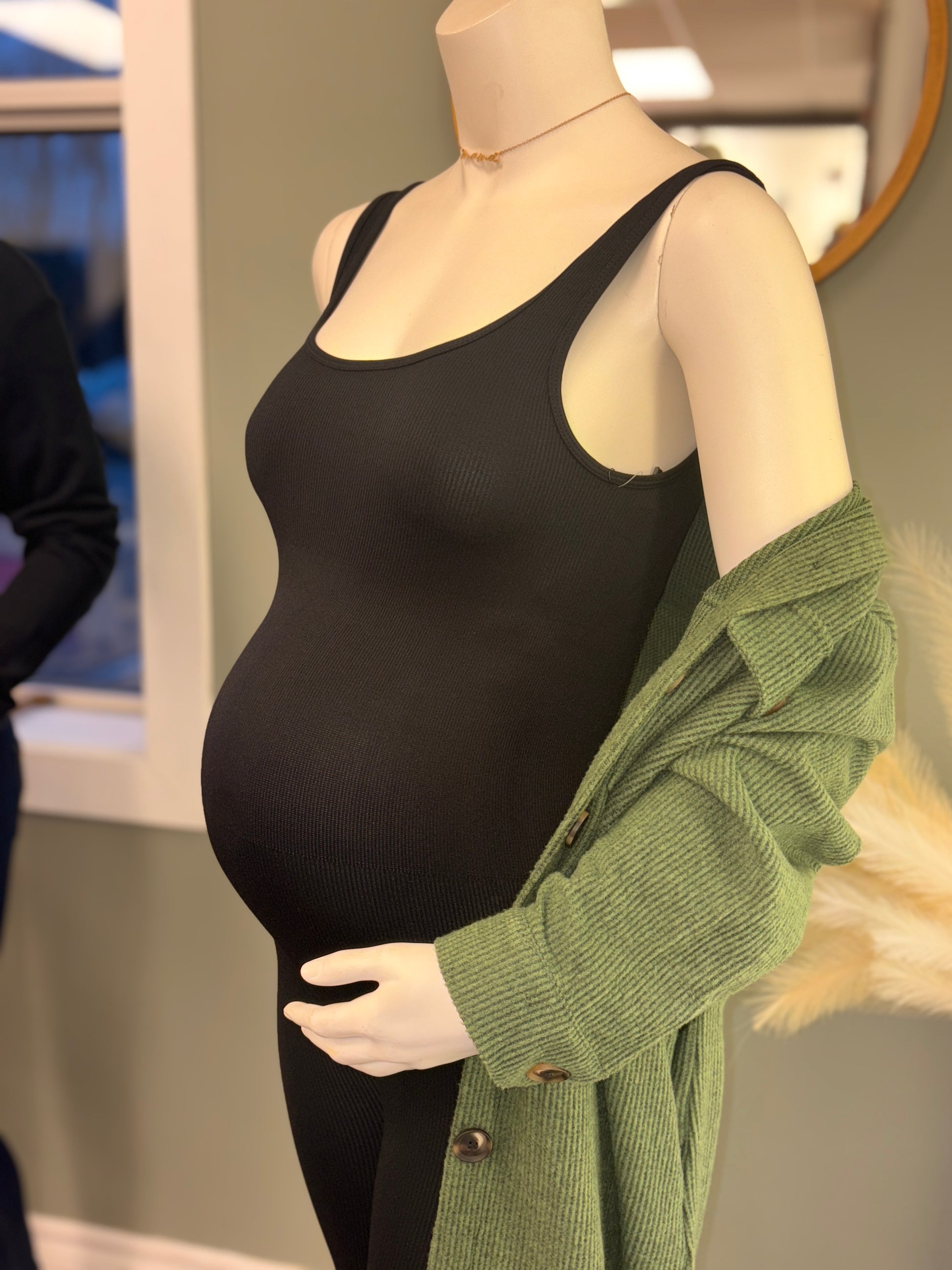 With a body-hugging fit, scoop neckline, and flare leg, it’s designed to flatter through every stage of pregnancy and beyond. The seamless construction feels incredible on, while the versatile style makes it easy to wear solo in warmer months or layered under chunky sweaters and cardigans when the weather cools. Comfortable, chic, and endlessly wearable — this is a staple piece you’ll keep reaching for year-round.
