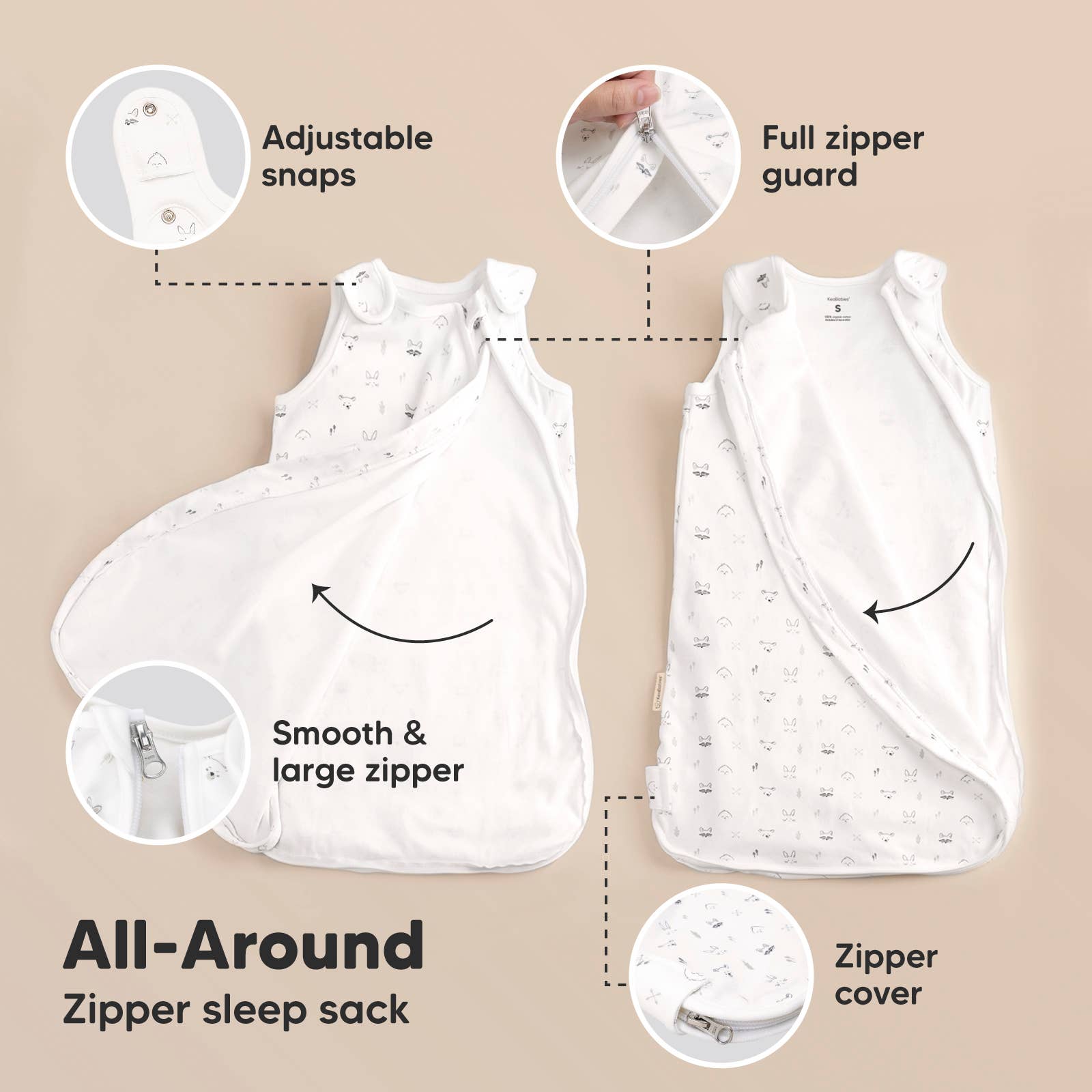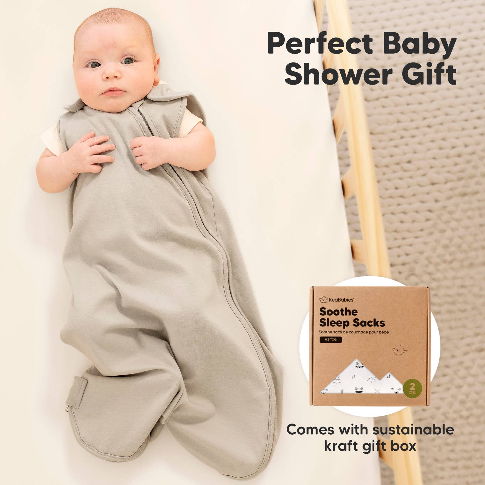 KeaBabies Soothe Sleep Sacks, 2-pack, are ergonomically designed to keep your baby snug and comfortable through the night. Made of soft and breathable 0.5 TOG cotton, this lightweight, temperature-regulating swaddle sack is great for use all year-round. Our sleeping bag comes with practical smooth zipper for easy diapering and changing. This versatile wearable blanket can be used as a sleeping sack and is the perfect transitional swaddle sleep sack for sleep training your baby girls and boys.