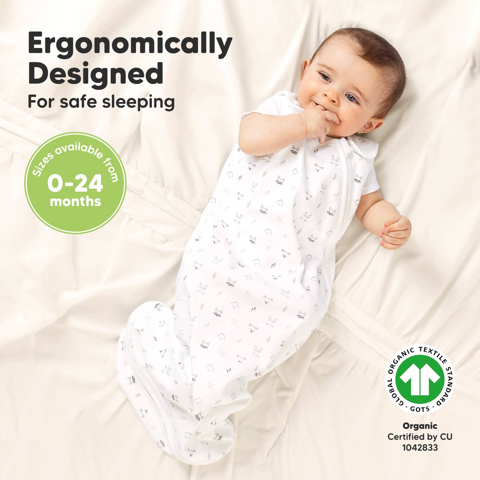 - Soft and breathable organic cotton (Certified by CU 1042833)