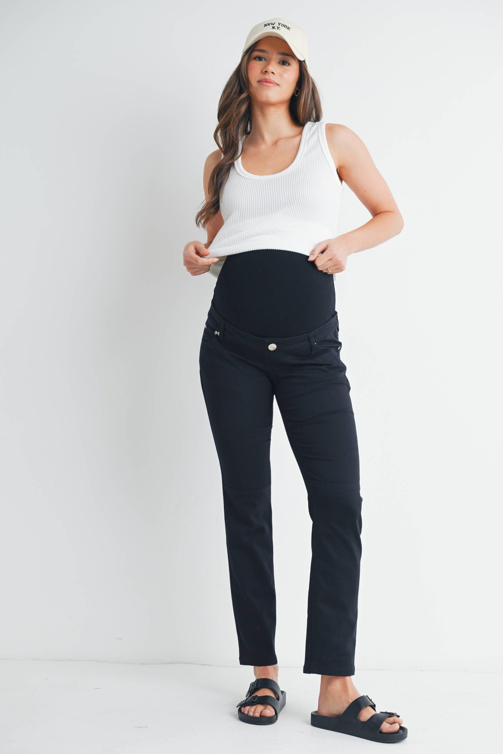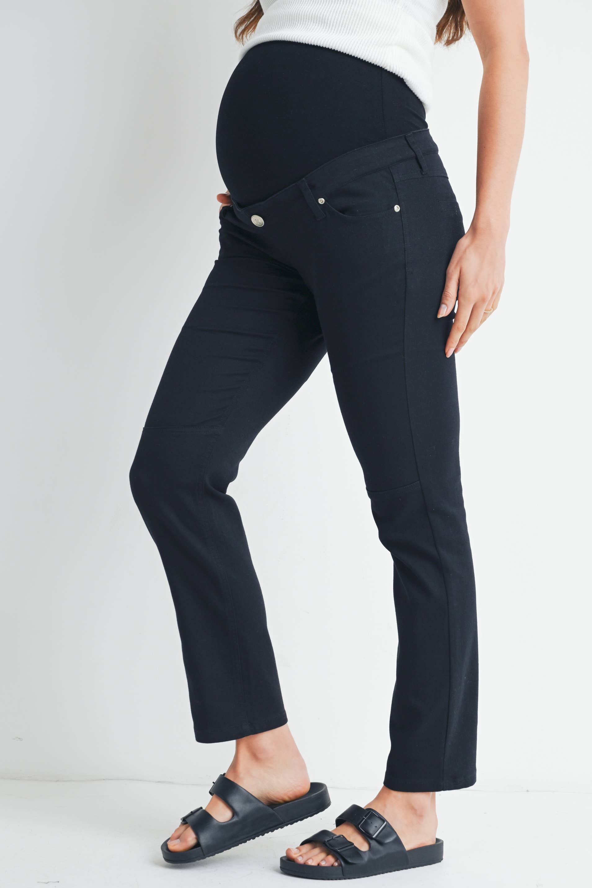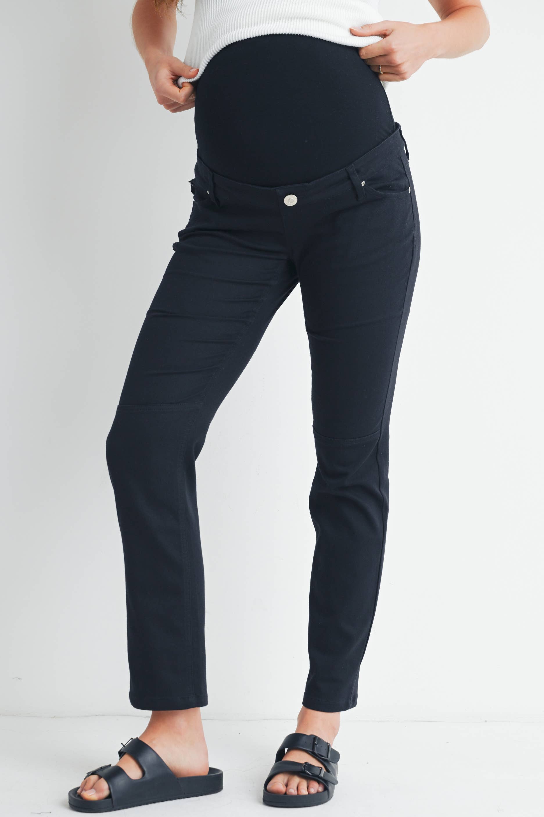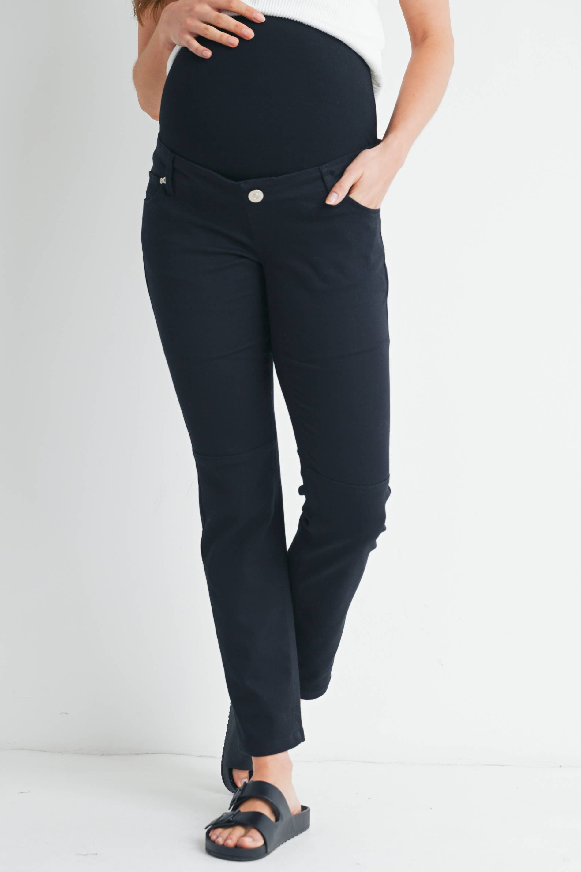 Straight Leg Maternity Pants with Over the Belly and Adjustable Waistband