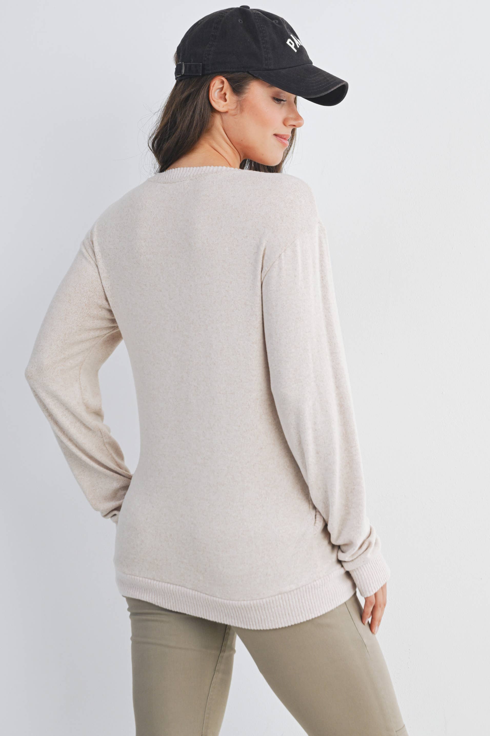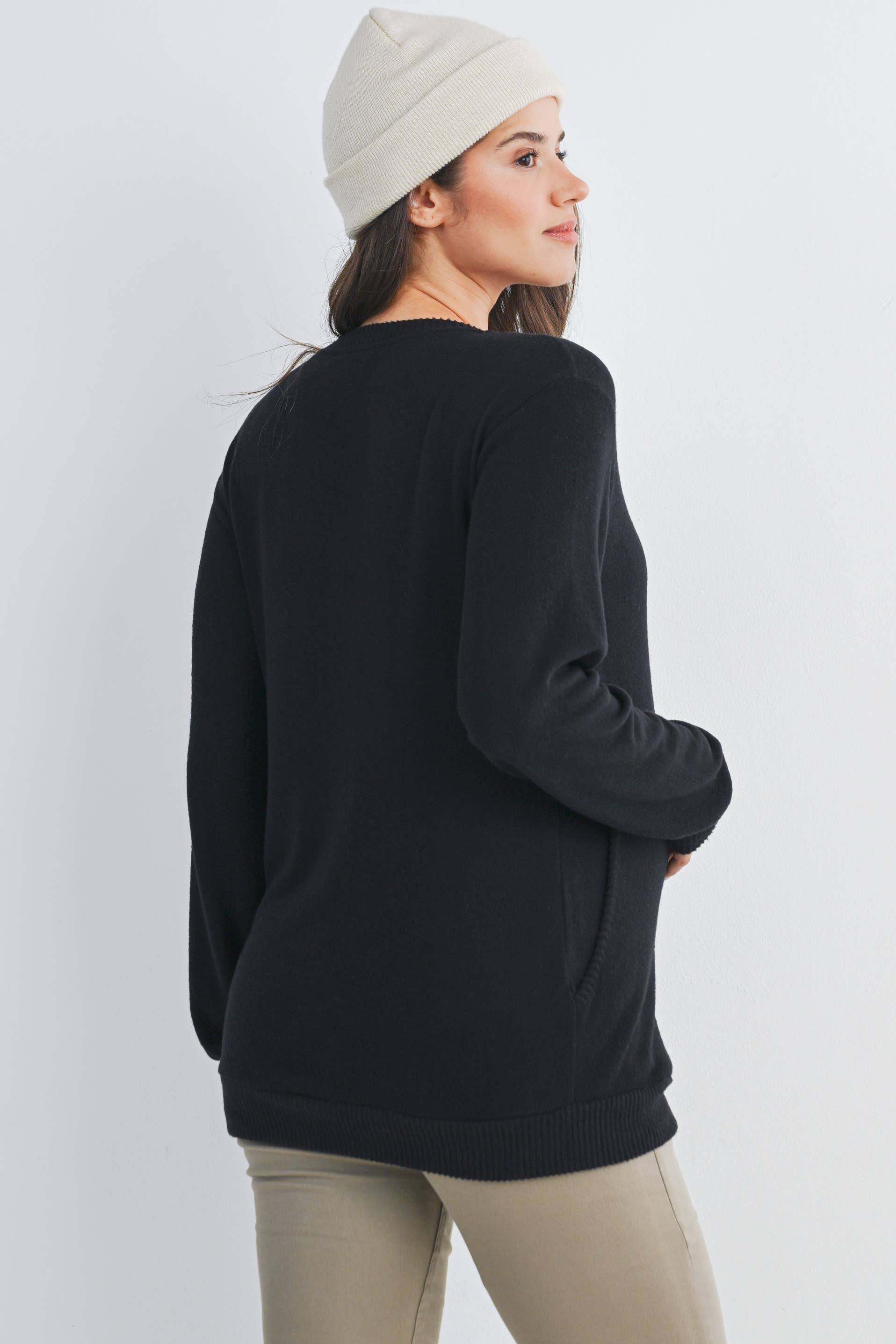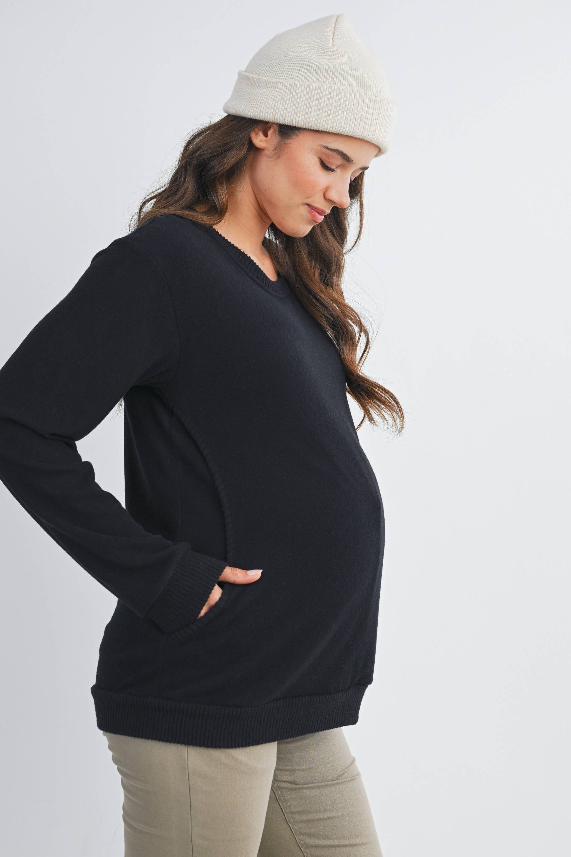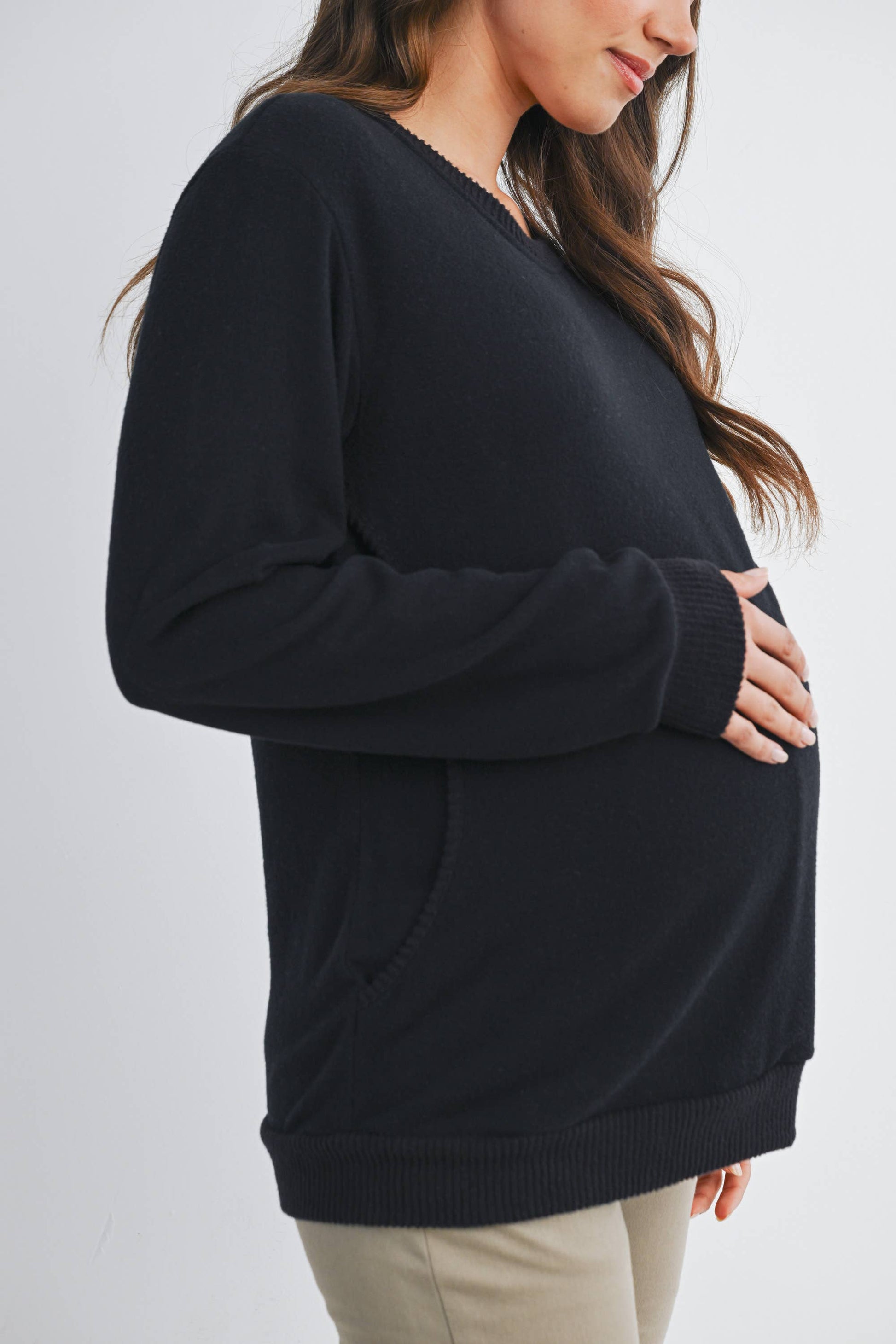The Vana Maternity & Nursing Pullover combines comfort and practicality with its soft knit fabric and thoughtful design. Featuring a flattering V-neck and double-layer long sleeves, this pullover adapts seamlessly to your changing body during pregnancy and nursing. The double layers provide discreet nursing access, while the side pockets offer convenient storage for essentials on the go. Perfect for everyday wear, this pullover ensures you stay cozy and stylish throughout your maternity journey.